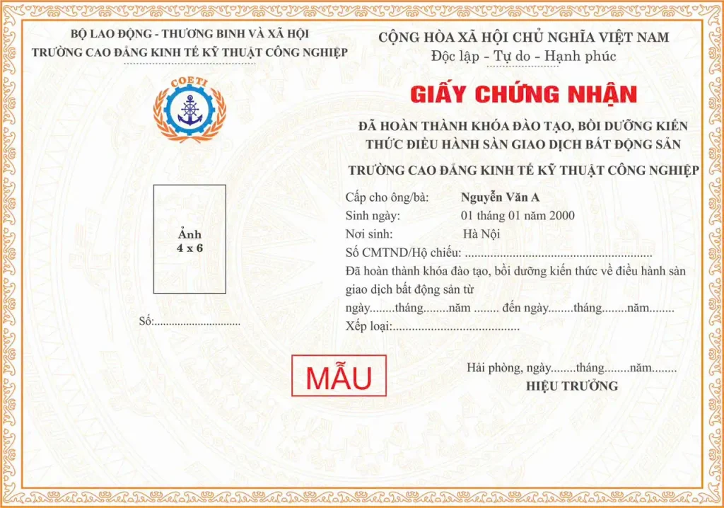 Chứng nhận Điều hành sàn giao dịch bất động sản
