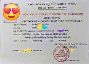 Sau khi hoàn thành khóa học và thi đạt, học viên sẽ được cấp chứng chỉ, là điều kiện cần và đủ để xin cấp thẻ hành nghề hướng dẫn viên du lịch quốc tế và nội địa tại Sở Văn hóa – Thể thao – Du lịch toàn quốc.
